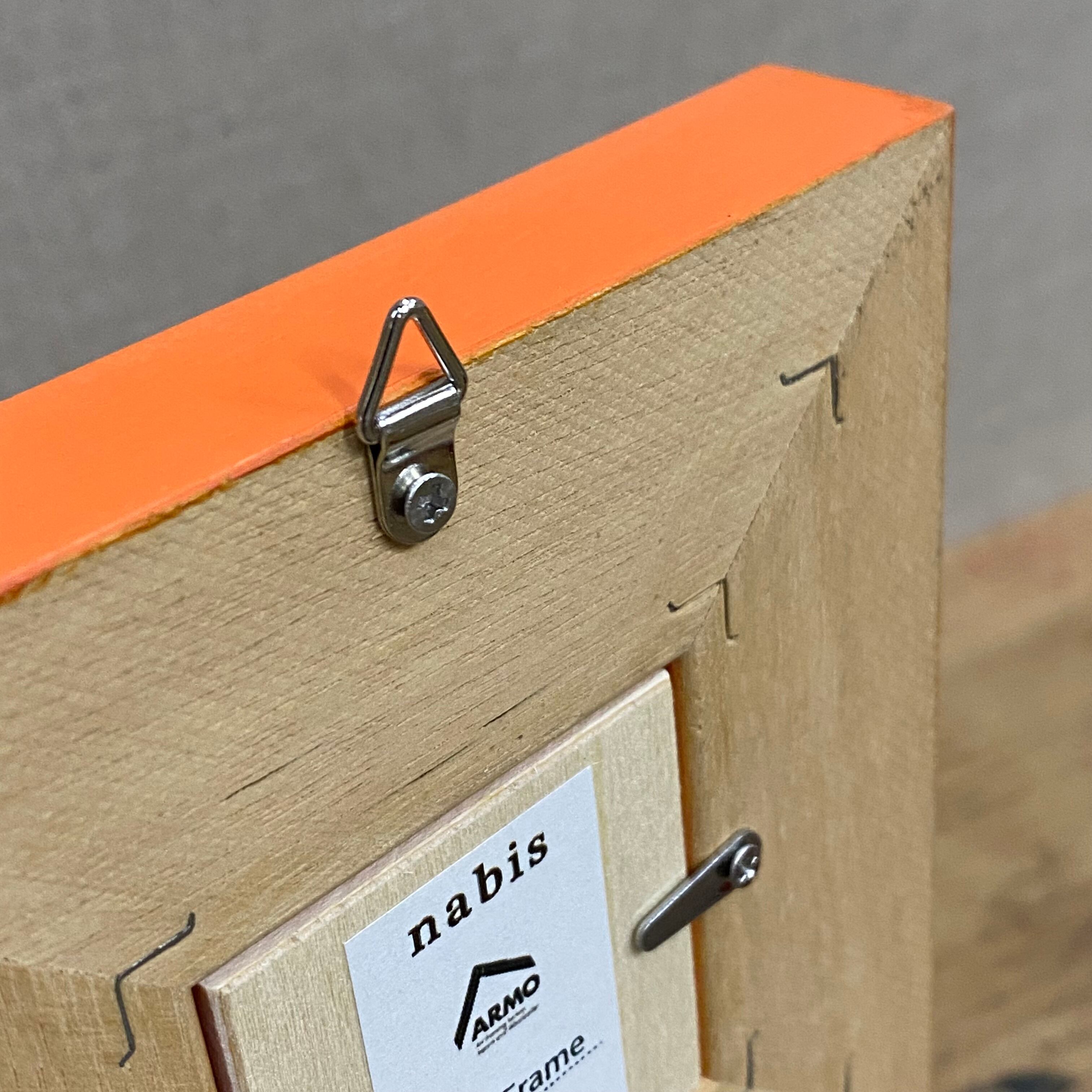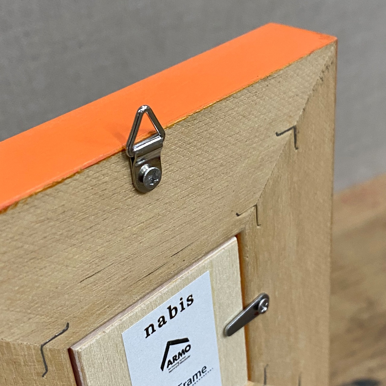 壁掛け用の金具付きです。縦横どちらでも使えます。